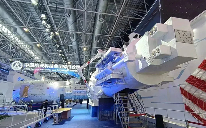 第十四屆中國航展將迎來首個公眾日,航天科技集團五院精心打造的中國空間站組合體1:1展示艙在航展7號館和大家見面。參展人員可以實地走進艙體內部,打卡中國空間站,感受中國“太空之家”的恢弘大氣。