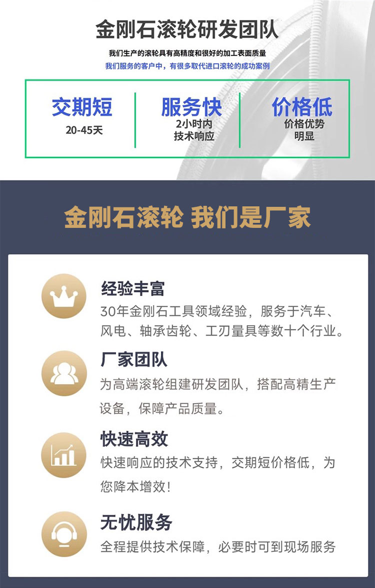 金剛石滾輪適用于各類(lèi)砂輪修整,具有高精度的特性。