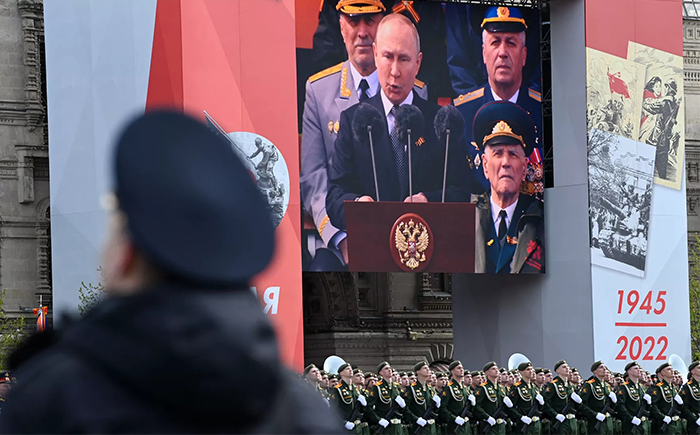 在紅場閱兵的現場,總統弗拉基米爾·V·普京(Vladimir V. Putin)將烏克蘭戰爭描述為二戰的延續。他在演講中對駐烏克蘭的俄羅斯士兵說:“你們是為祖國而戰,為它的未來而戰,不讓任何人忘記二戰的教訓。”
